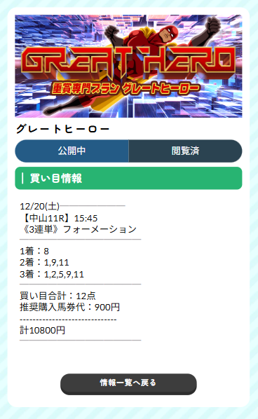 私も翌日の26日に的中貰えました。しかsも16頭立ての15番人気の馬券内を完璧に的中させて268万4160円でし! 自慢みたいになっちゃってますが実績はしっかりと載せさせてもらいます。