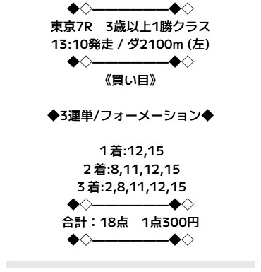 今日の重賞無料予想、馬連ワイド全的中1点千円投資で9万5300円の払い戻しもらえました。
