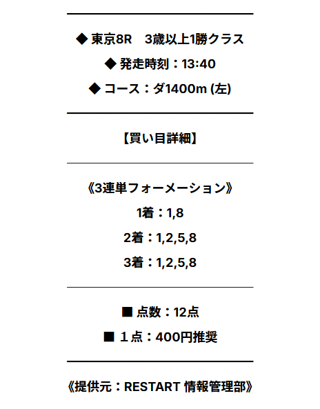 ◎〇の3連単2頭流し(マルチ)点数6点(1点1500円)合計9千円の馬券代で勝負して無料予想で484,950円獲得!