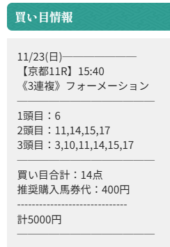 3連単100万馬券的中なんて買い目点数何点あっても足りないからね、無難に3連複を獲りに行ったのが分かる買い目で納得!